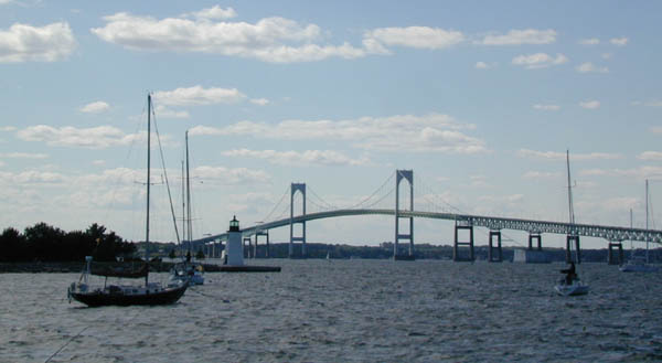 Newport Harbor Lighthouse (Goat Island Light) and Newport Bridge